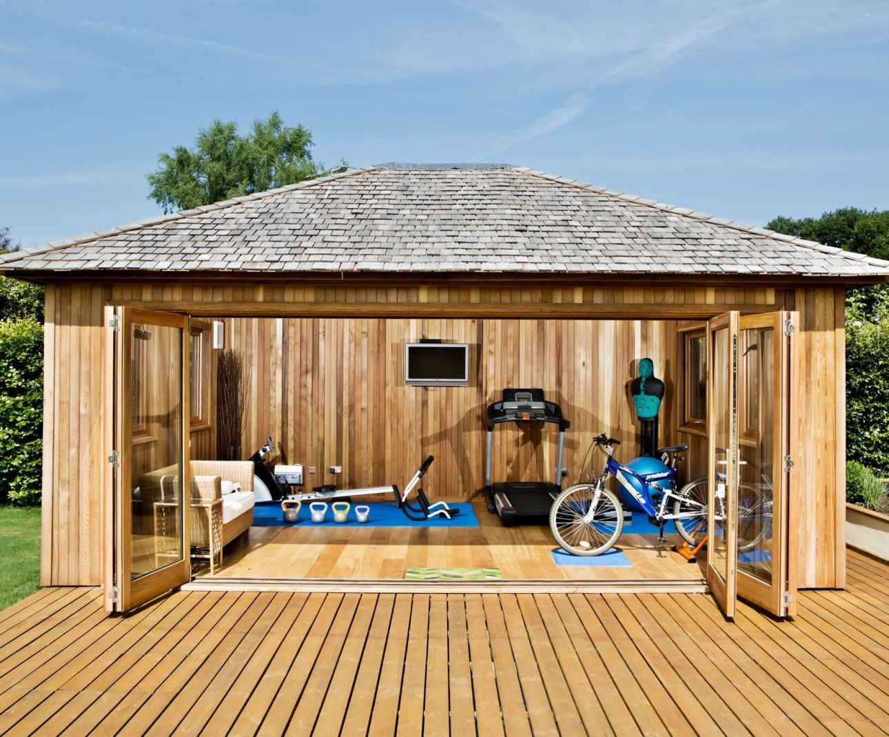A Crown Pavilions garden gym gives you the freedom to train on your schedule in a space designed for serious fitness. From cardio and weights to yoga and Pilates, our garden gyms are built with reinforced floors, climate control, and ample ventilation to create the perfect training environment.